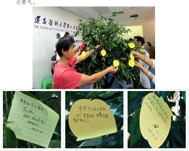 为深入贯彻落实国家卫生健康委《进一步改善护理服务行动计划(2023—2025年)》《医学人文关怀提升行动方案(2024-2027 年)》等文件精神,落实《健康中国2030规划纲要》《健康中国行动—癌症防治实施方案(2023—2030年)》对心理健康服务的指导要求,遵医二附院肿瘤片区于10月10日“世界精神卫生日”,围绕“人人享有心理健康服务”主题,开展“心光汇聚,疗愈同行”肿瘤患者心理关爱活动,旨在提升患者及家属对常见心理问题的认知与调适能力,推动公众理解心理健康知识,增强社会对精神健康的关注,营造优质人文医疗环境。