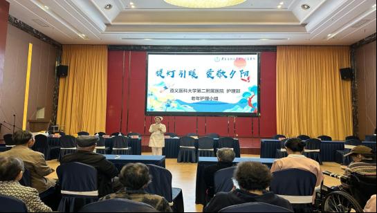 金秋重阳,敬老情浓。为深入贯彻落实国家卫生健康委《进一步改善护理服务行动计划(2023—2025年)》《医学人文关怀提升行动方案(2024-2027年)》及《“十四五”健康老龄化规划》等文件精神,优化老年健康服务供给、提升服务质量。10月29日,重阳节来临之际,遵义医科大学第二附院护理部老年护理小组响应国家政策号召,走进遵义市益养苑,举办“提灯引暖 爱敬夕阳”主题活动,以专业护理与暖心关怀,为院内老人送上节日问候与健康守护。